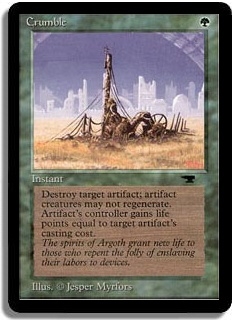 Bury target artifact. Artifact's controller gains life equal to the artifact's casting cost.