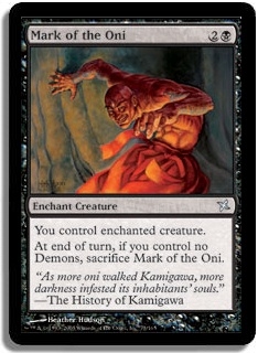 You control enchanted creature. At end of turn, if you control no Demons, sacrifice Mark of the Oni.