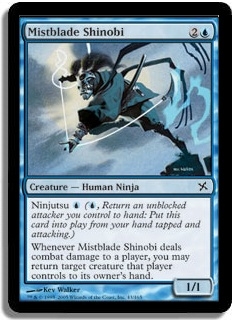 Whenever Mistblade Shinobi deals conbat damage to a player, you may return target creature that player controls to its owner's hand.
