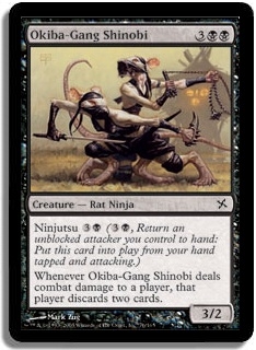 When Okiba-Gang Shinobi deals combat damage to a player, that player discards two cards from his or her hand.