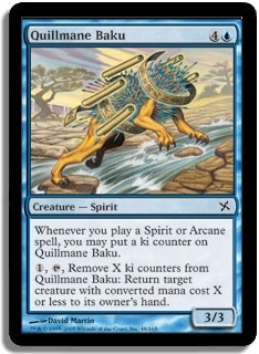 Whenever you play a Spirit or Arcane spell, you may put a ki counter on Quillmane Baku.