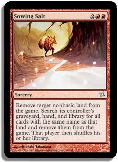 Remove target nonbasic land from the game. Search its controller's graveyard, hand and library for all copies of that card and remove them from the game. That player then shuffles his or her library.