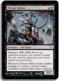 Whenever Throat Slitter deals combat damage to a player, destroy target creature that player controls.