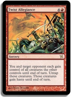 You and target opponent each gain control of all creatures the other controls until end of turn. Untap those creatures. They gain haste until end of turn.