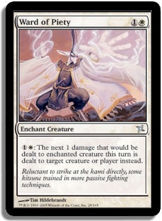 1W: The next 1 damage that would be dealt to enchanted creature this turn is dealt to target creature or player instead.