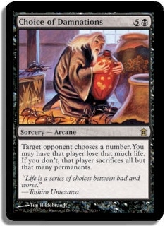 Target opponent chooses a number. You may have that player lose that much life. If you don't, that player sacrifices all but that many permanents.
