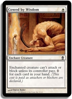 Enchanted creature can't attack or block unless its controller pays 1 for each card in your hand. (This cost is played as attackers or blockers are declared.)