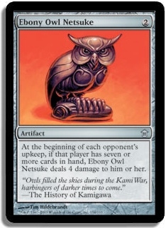 cards in hand, Ebony Owl Netsuke deals 4 damage to him or her.