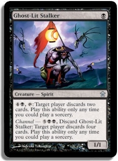 Channel - 5BB, Discard Ghost-Lit Stalker: Target player discards four cards. Play this ability only any time you could play a sorcery.