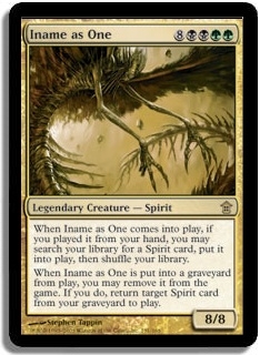 When Iname as One comes into play, if you played it from your hand, you may search your library for a Spirit card, put it into play, then shuffle your library.
