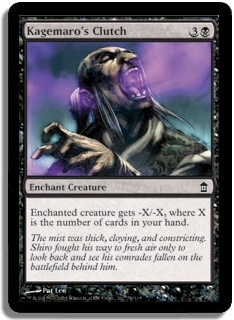 Enchanted creature gets -X/-X, where X is the number of cards in your hand.