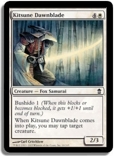 When Kitsune Dawnblade comes into play, you may tap target creature.