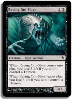 When Raving Oni-Slave comes into play, you lose 3 life if you don't control a Demon.