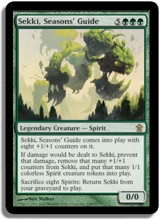 Sekki, Seasons' Guide comes into play with eight +1/+1 counters on it.