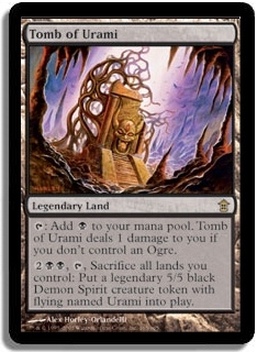 T: Add B to your mana pool. Tomb of Urami deals 1 damage to you if you don't control an Ogre.