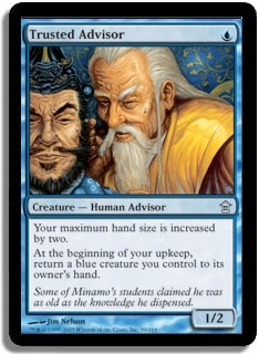 At the beginning of your upkeep, return a blue creature you control to its owner's hand.