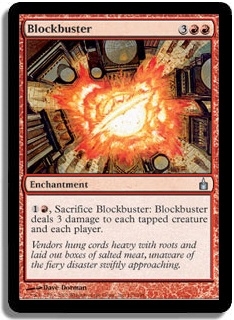 1R, Sacrifice Blockbuster: Blockbuster deals 3 damage to each tapped creature and each player.