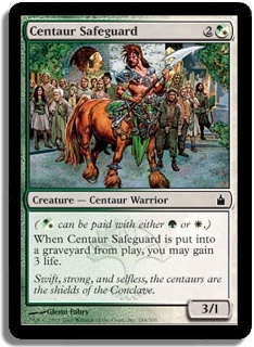 When Centaur Safeguard is put into a graveyard from play, target player gains 3 life.