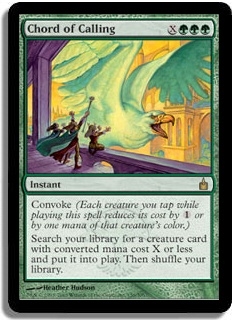 Search your library for a creature card with converted mana cost X or less and put it into play. Then shuffle your library.