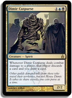 Whenever Dimir Cutpurse deals combat damage to a player, that player discards a card and you draw a card.