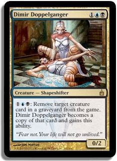 1UB: Remove target creature card in a graveyard from the game. Dimir Doppelganger becomes a copy of that card and gains this ability.