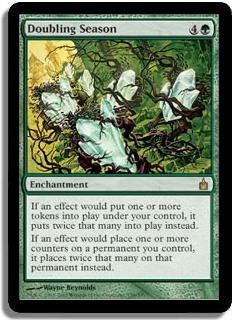 If an effect would put one or more tokens into play under your control, it puts twice that many into play instead. If an effect would place one or more counters on a permanent you control, it places twice that many on that permanent instead.