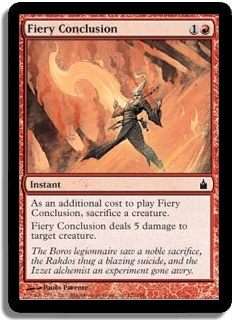 As an additional cost to play Fiery Conclusion, sacrifice a creature.