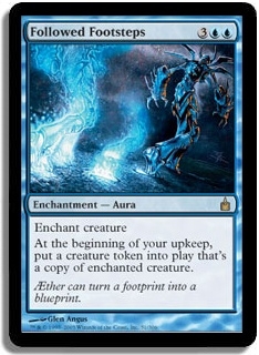 At the beginning of your upkeep, put a creature token into play that's a copy of enchanted creature.