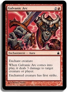 When Galvanic Arc comes into play, it deals 3 damage to target creature or player.