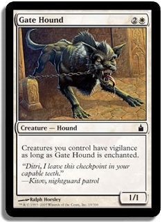 Creatures you control have vigilance as long as Gate Hound is enchanted.