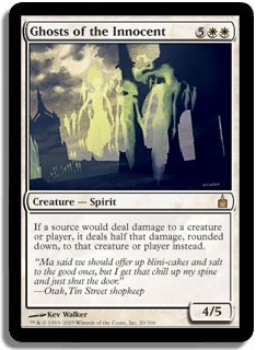 If a source would deal damage to a creature or player, it deals half that damage, rounded down, to that creature or player instead.