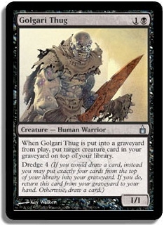 When Golgari Thug is put into a graveyard from play, put target creature card in your graveyard on top of your library.