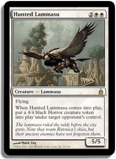 When Hunted Lammasu comes into play, put a 4/4 black Horror creature token into play under target opponent's control.