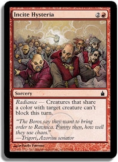 Radiance - Creatures that share a color with target creature can't block this turn.