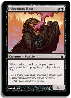 When Infectious Host is put into a graveyard from play, target player loses 2 life.