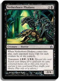 When Netherborn Phalanx comes into play, each opponent loses 1 life for each creature he or she controls.