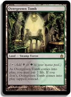 As Overgrown Tomb comes into play, you may pay 2 life. If you don't, Overgrown Tomb comes into play tapped instead.