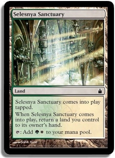 When Selesnya Sanctuary comes into play, return a land you control to its owner's hand.