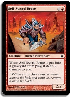 When Sell-Sword Brute is put into a graveyard from play, it deals 2 damage to you.