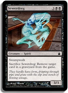Sacrifice Sewerdreg: Remove target card in a graveyard from the game.