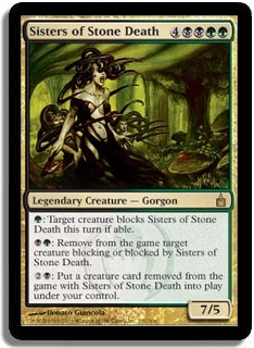 2B: Put a creature card removed from the game with Sisters of Stone Death into play under your control.