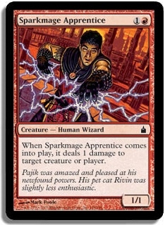 When Sparkmage Apprentice comes into play, it deals 1 damage to target creature or player.
