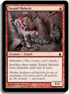Sacrifice three mountains: Torpid Morloch loses defender until end of turn.
