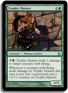 1G: Trophy Hunter deals 1 damage to target creature with flying.