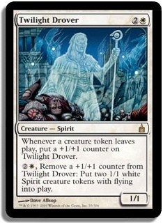 Whenever a creature token leaves play, put a +1/+1 counter on Twilight Drover.