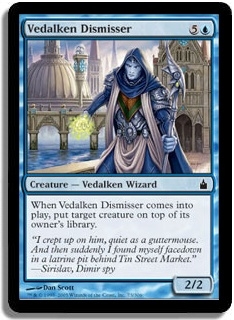 When Vedalken Dismisser comes into play, put target creature on top of its owner's library.