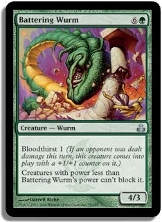 Creatures with power less than Battering Wurm's power can't block it.