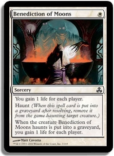 When the creature Benediction of Moons haunts is put into a graveyard from play, you gain 1 life for each player.
