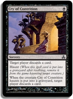 When the creature ~this~ haunts is put into a graveyard, target player discards a card.