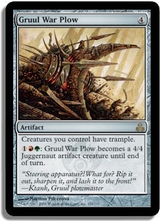 1(R)(G): Gruul War Plow becomes a 4/4 Juggernaut artifact creature until end of turn.